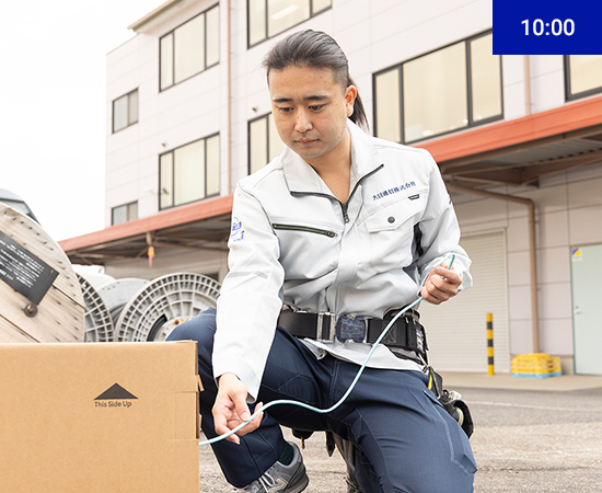 体を動かすことが好きで、毎日、違う現場へ出かけられる仕事を希望して入社しました。担当しているのは、企業のオフィスなどで使われる、ビジネスフォンなどの社内ネットワーク環境を整えること。ビジネスフォンというのは、私も入社して初めて知ったのですが、数字以外にずらりと並んだボタンを押せば、他部署と内線で通話できる電話機です。1台増やすだけの工事から、新規で70~80台を設置する数週間がかりの仕事まで、規模は大小さまざま。お客様のご希望の場所に合わせて、構内交換機からの配線や機器の設置、ボタンごとの内線の設定などを行います。高校で取得した工事担任者と電気工事士の知識は安全面で役立っていますが、資格がなくても問題なくできる工事です。